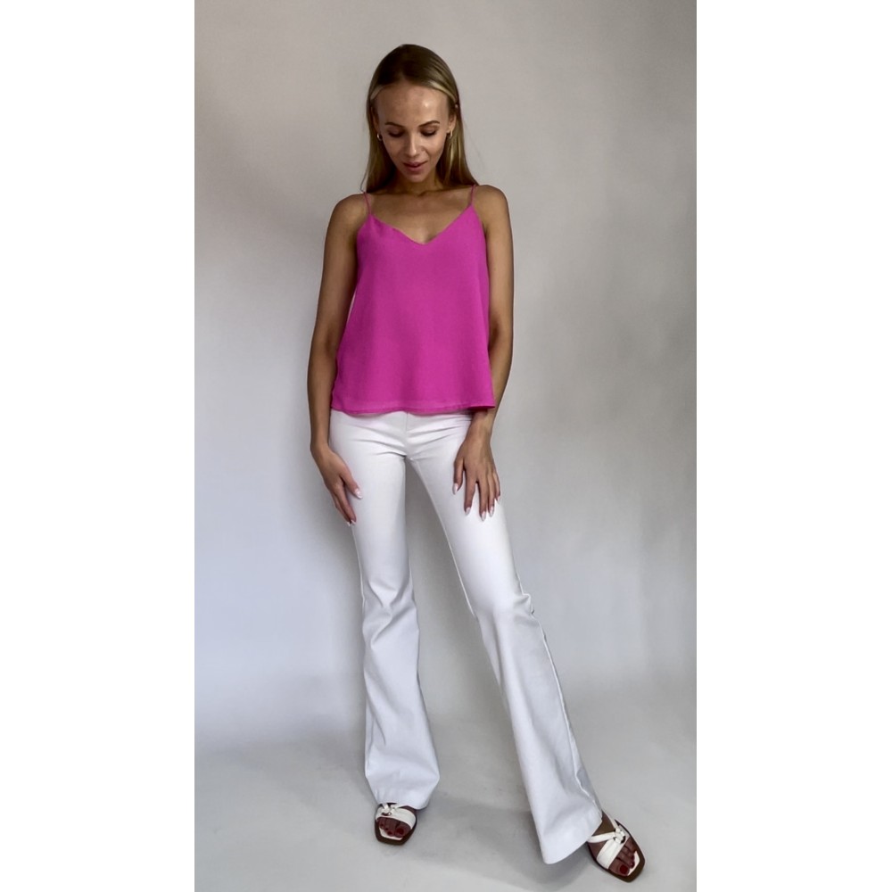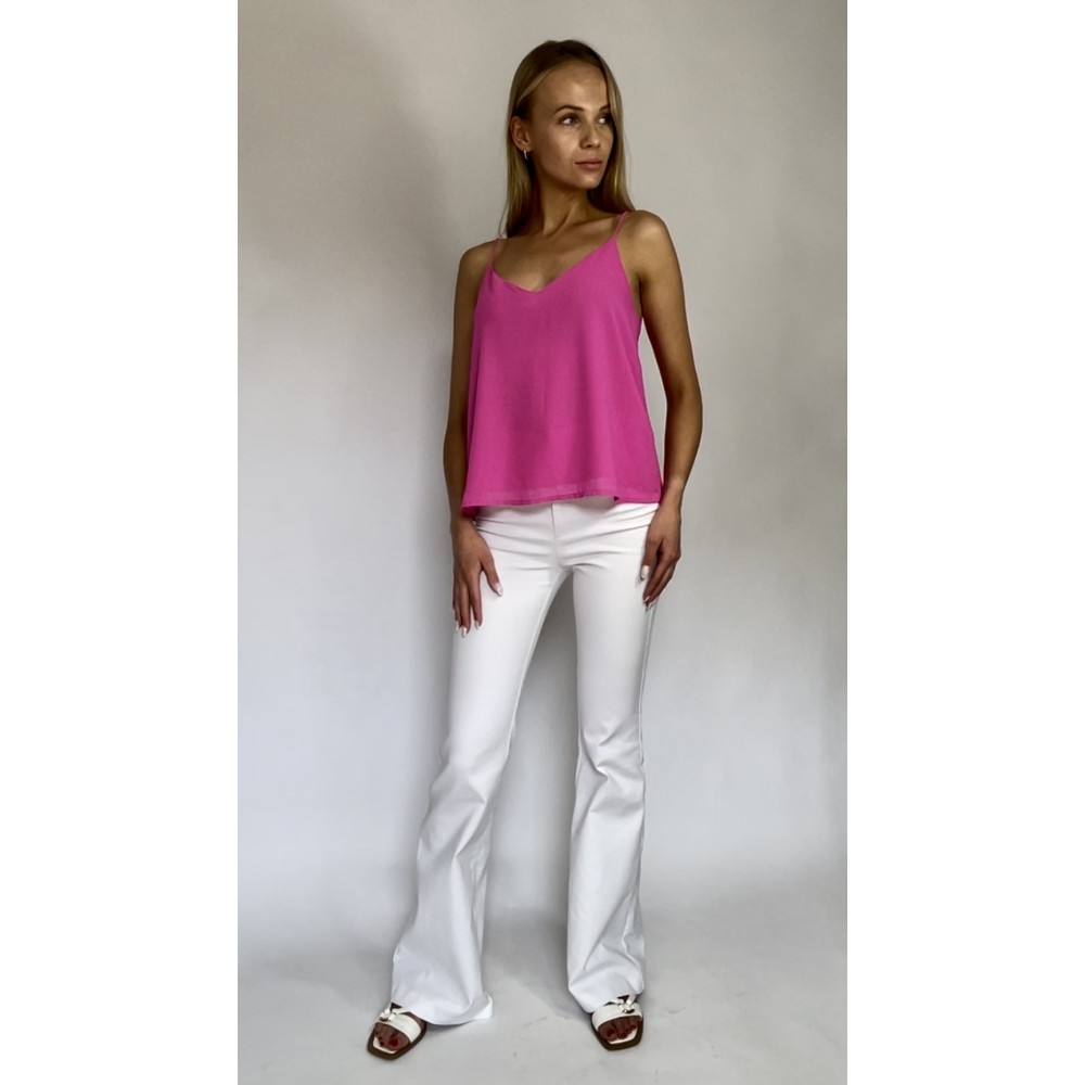 Bluzka na cienkich ramiączkach ze sznurkami, w kolorze fuksji, intensywny różowy kolor, ozdobne wiązanie/sznurowanie na plecach, luźny, zwiewny krój.