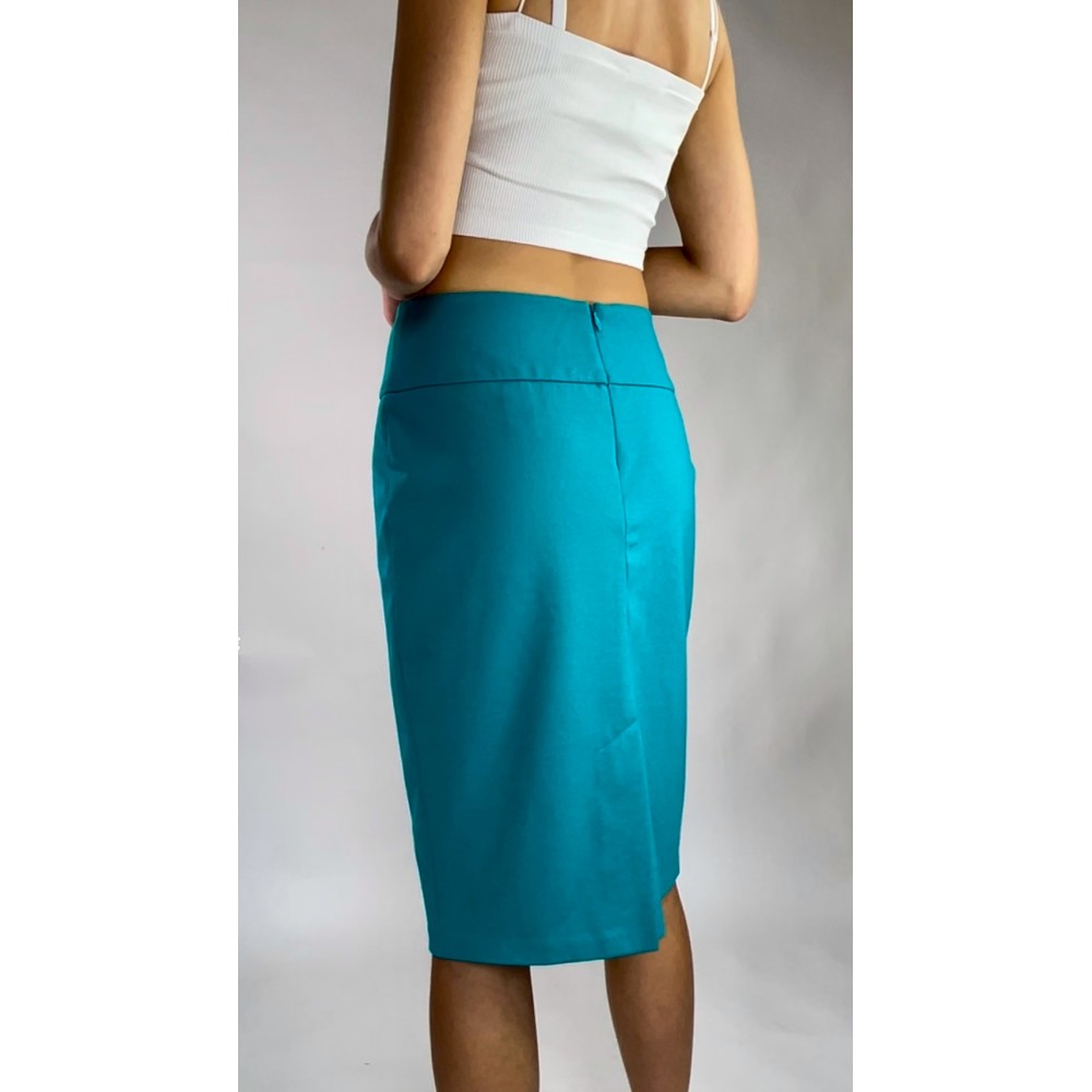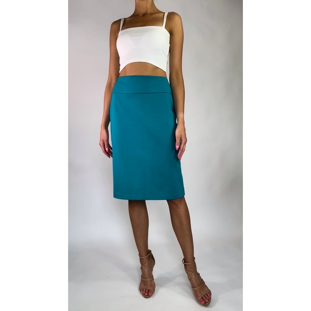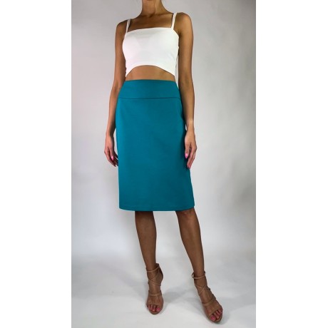 Turkusowa elegancka ołówkowa spódnica na suwak z tyłu, z dodatkiem wiskozy.