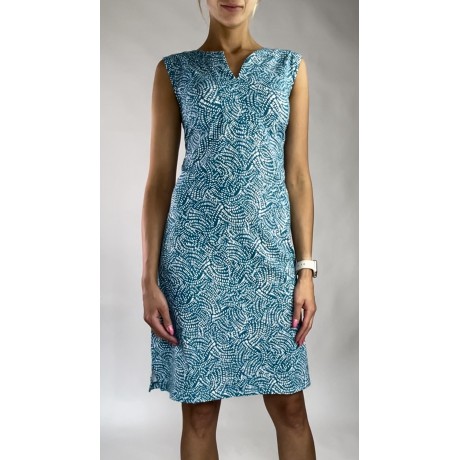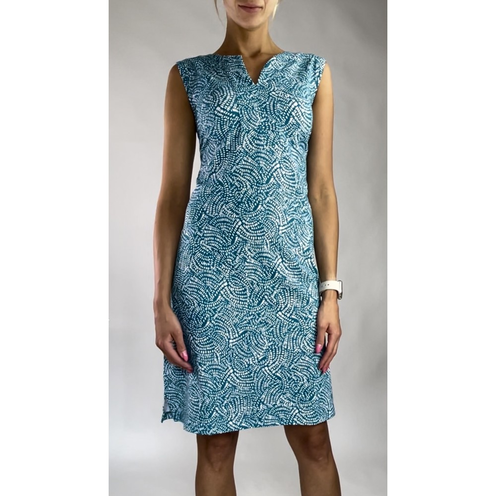 Błękitna/turkusowa sukienka bez rękawów z tkaniny chroniącej przed promieniowaniem UVA/UVB marki Coolibar.