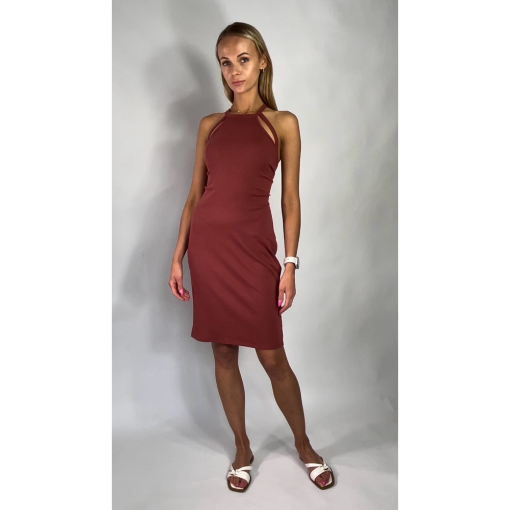 Krótka, dopasowana sukienka w prążki z dodatkiem wiskozy, w kolorze brunatnym.