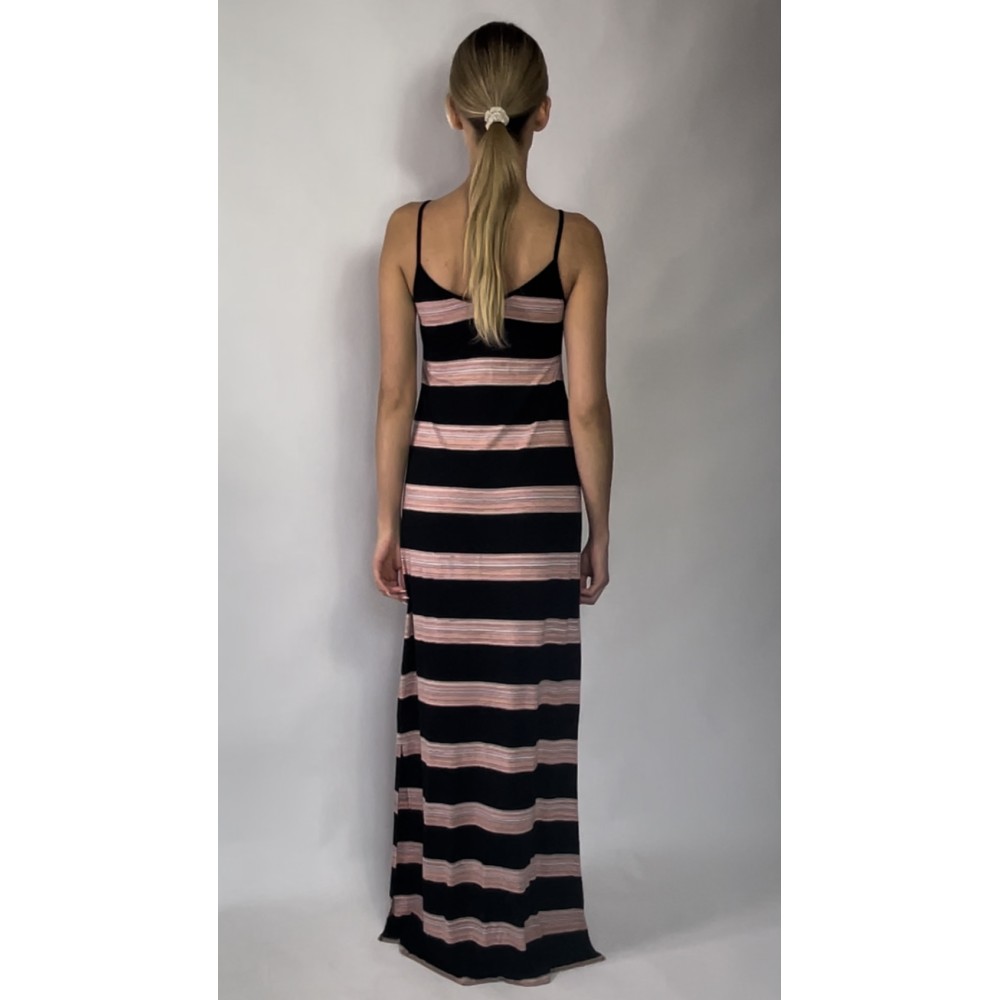 Maxi długa sukienka w szerokie paski, na cienkich ramiączkach, z małym rozcięciem na boku.
