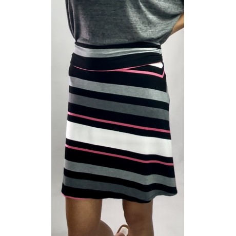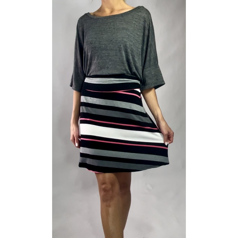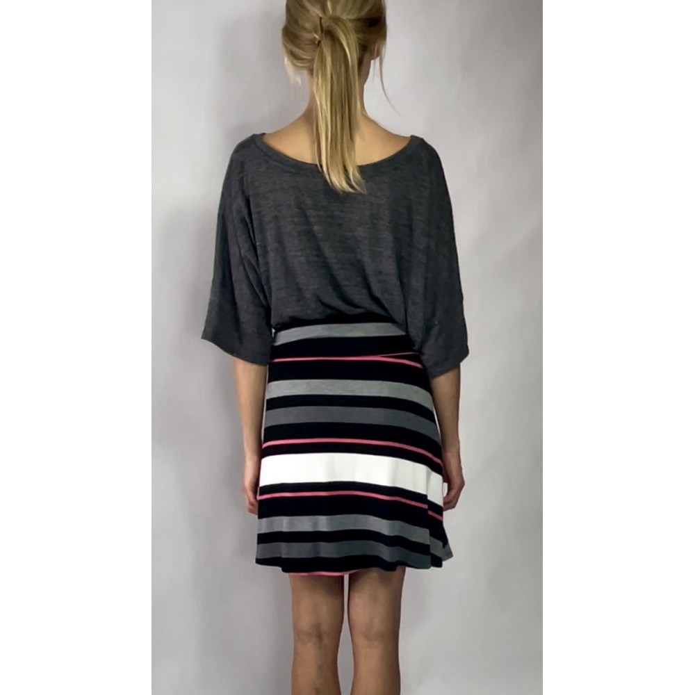 Krótka, przylegająca do ciała spódnica w paski z różowym akcentem, z wiskozy, z gumką w pasie.