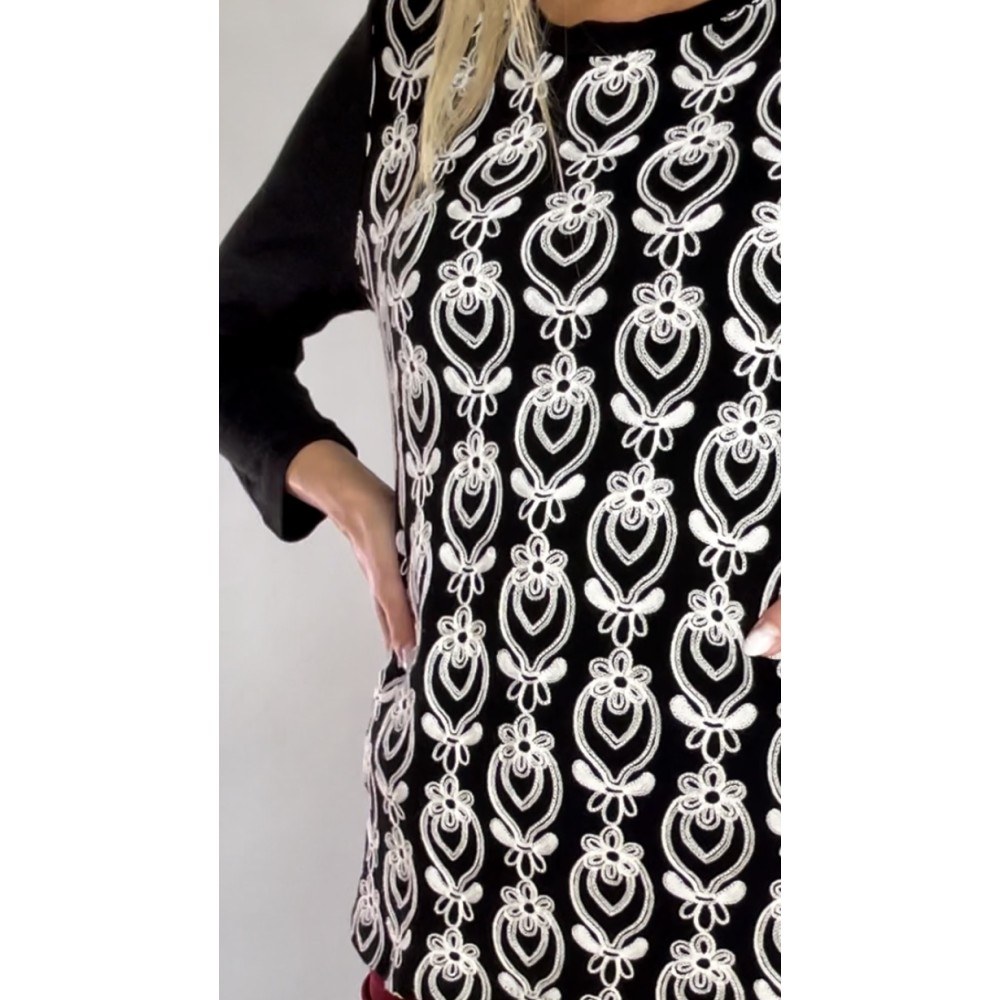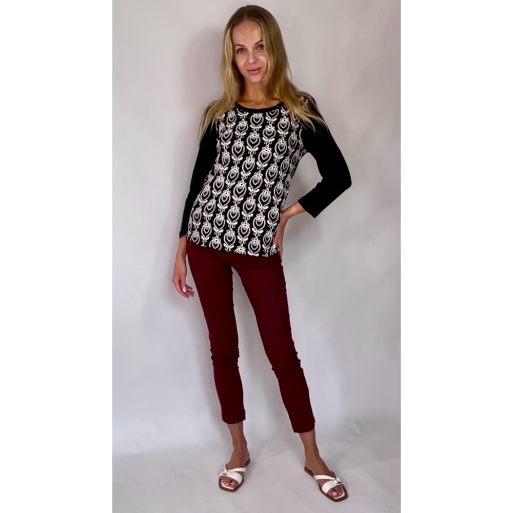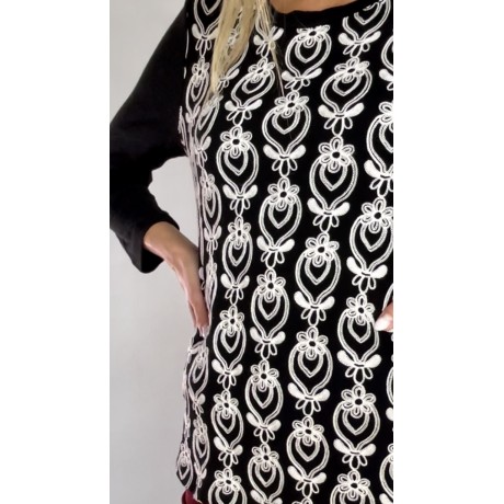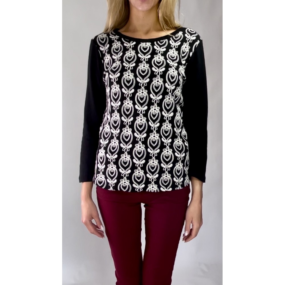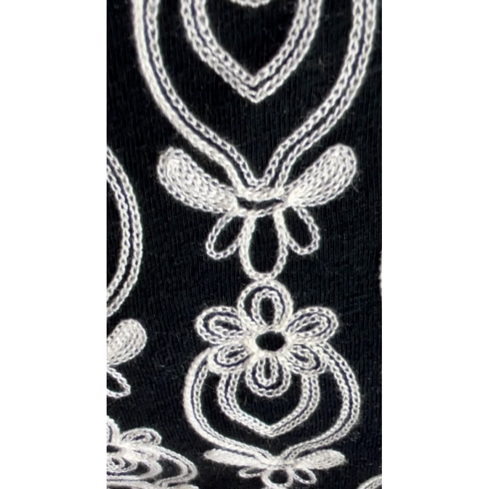 Czarna bluzka z bawełny marki J. Crew, z haftowanym białym wzorem, ze skróconym rękawem i gładkim tyłem.