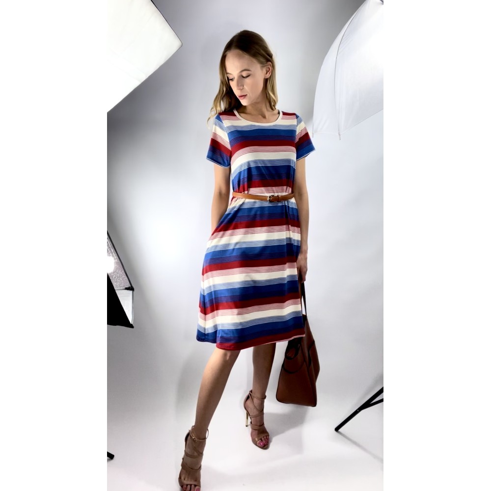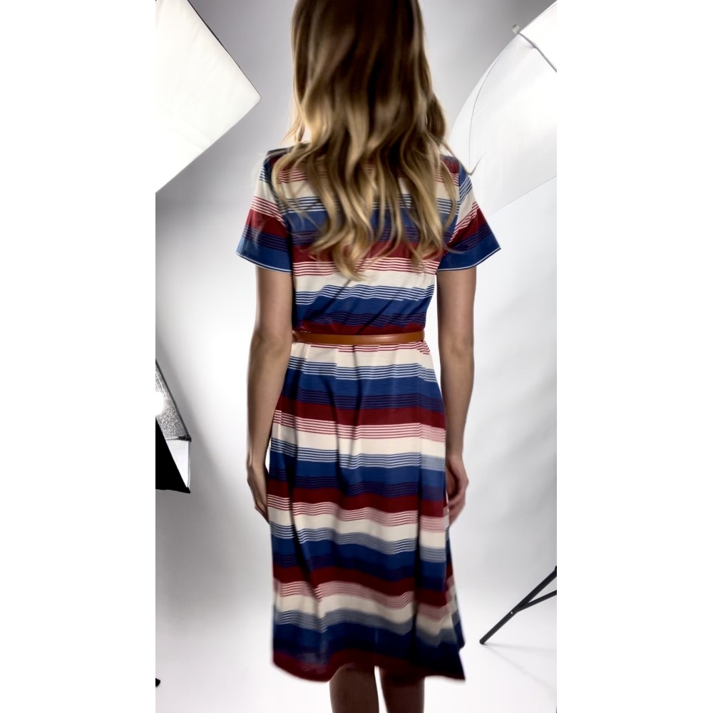 Luźna midi sukienka LuLaRoe na krótki rękaw, w poziome paski, z kieszeniami.