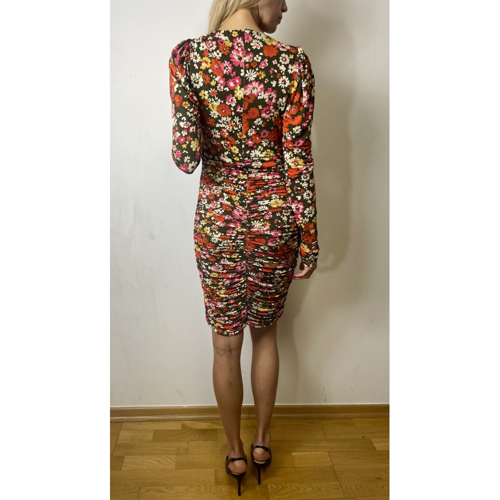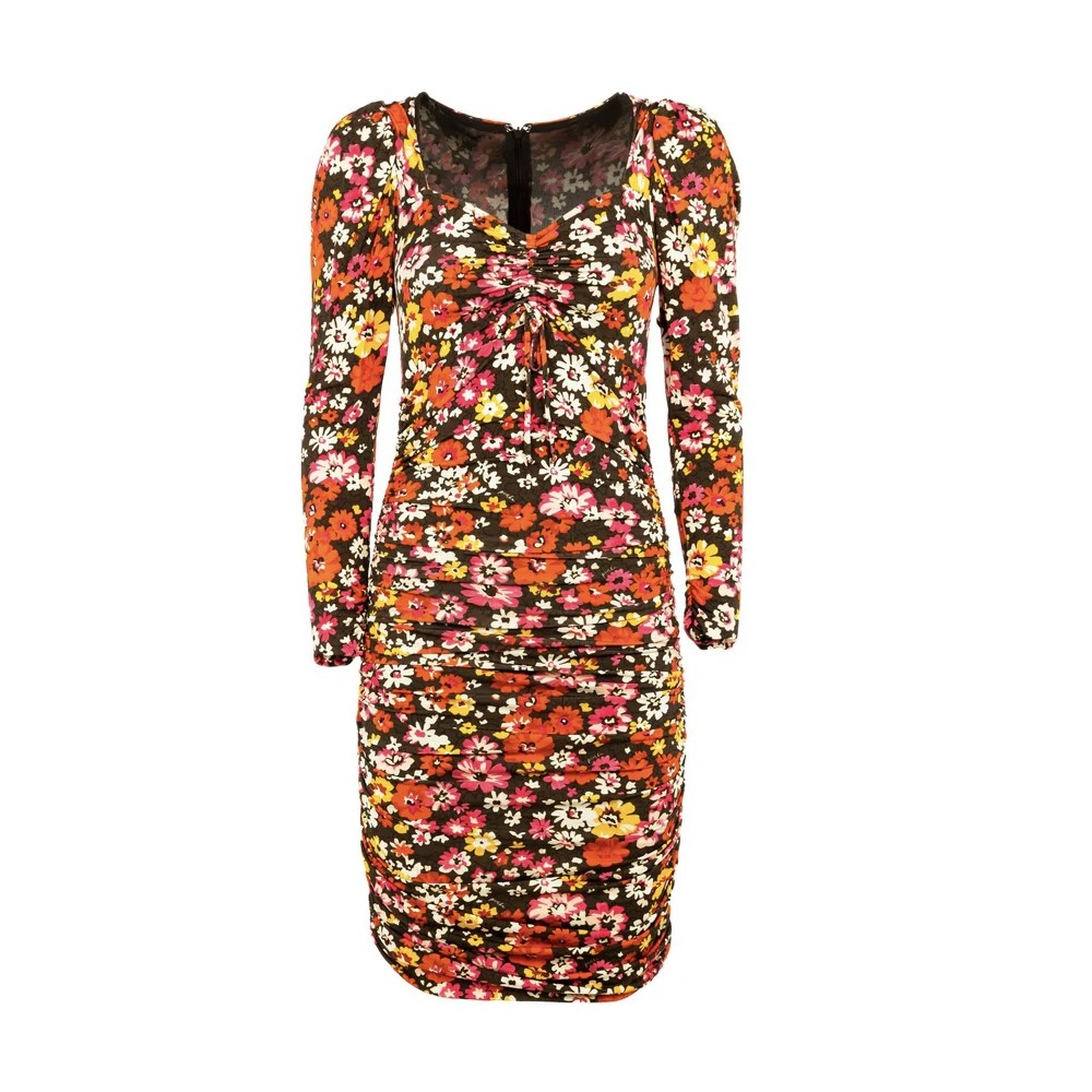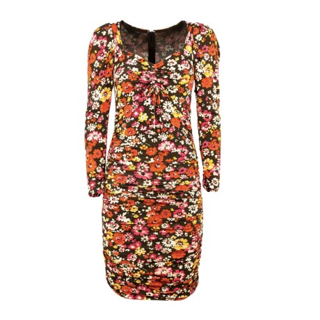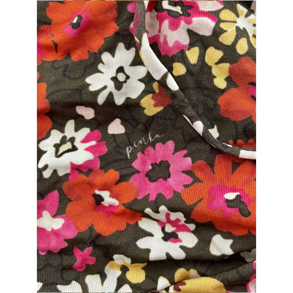 Sukienka w kwiaty Pinko Sicilia 1N13A1 8702 drapowana, marszczona, kryty zamek, długie rękawy.