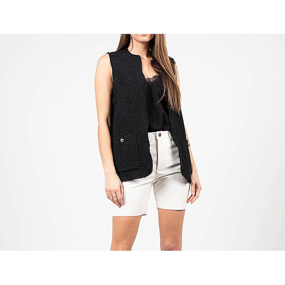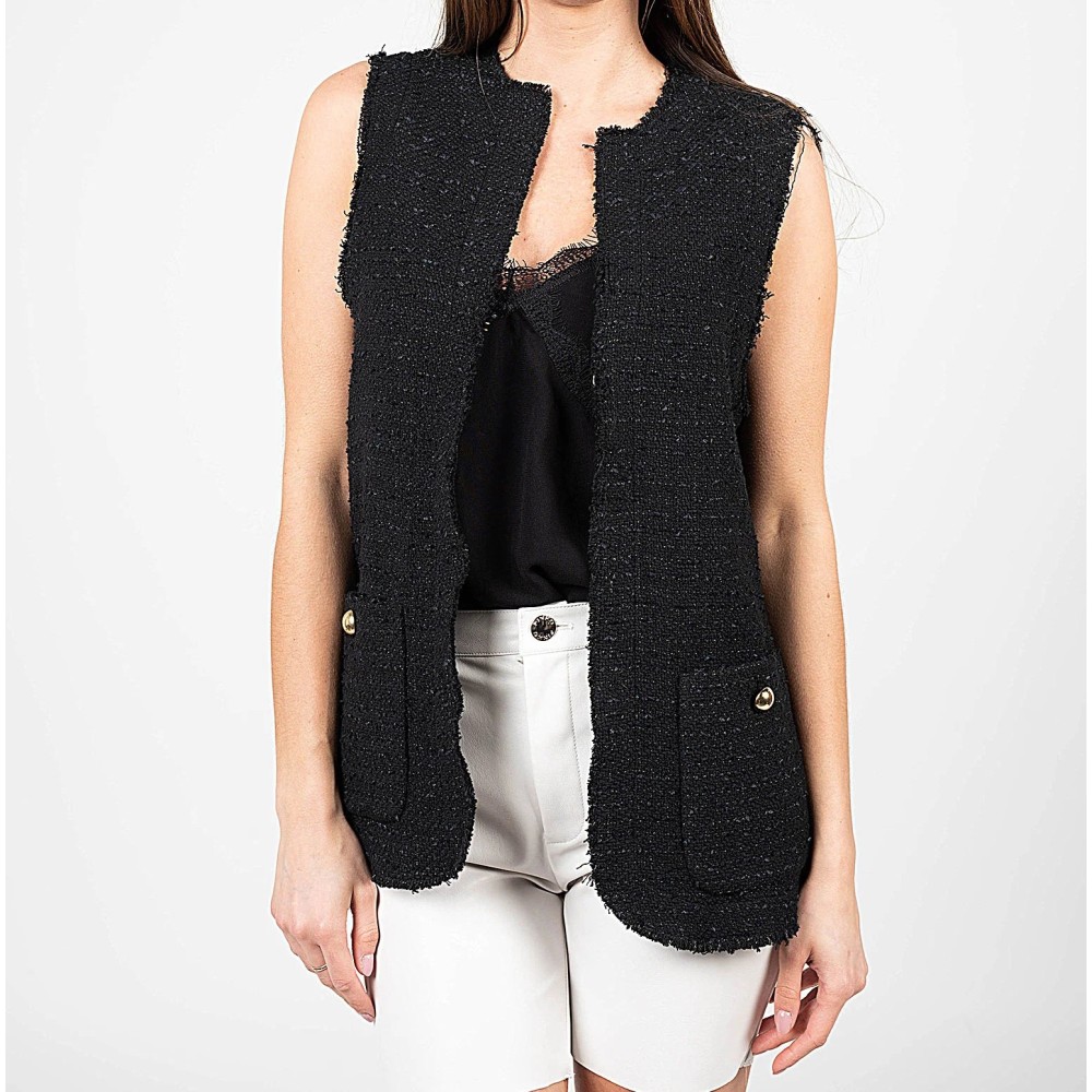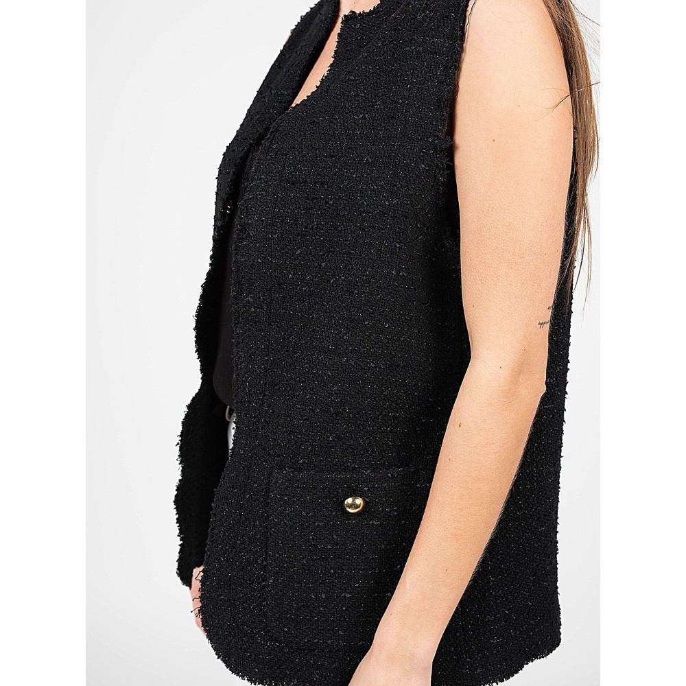 Czarna, tweedowa kamizelka Pinko "Neurologia" ze złotą nitką 1Z1069 8469
